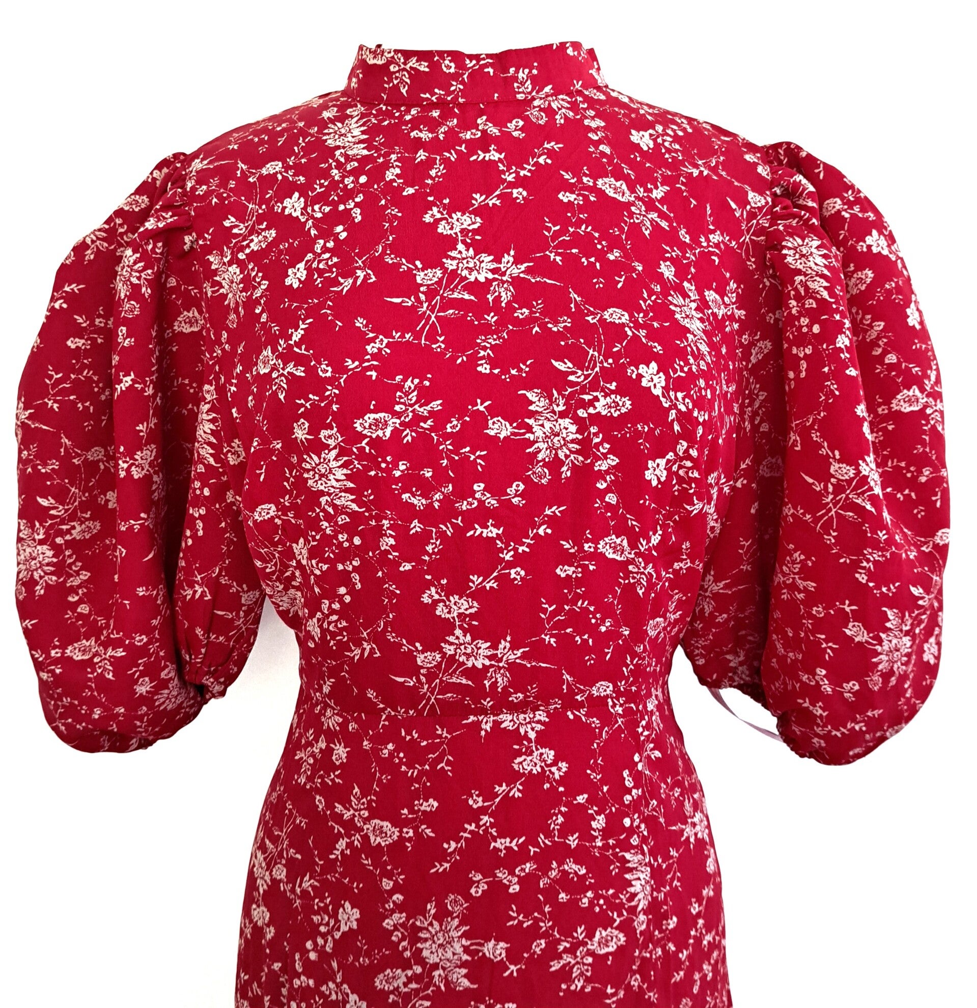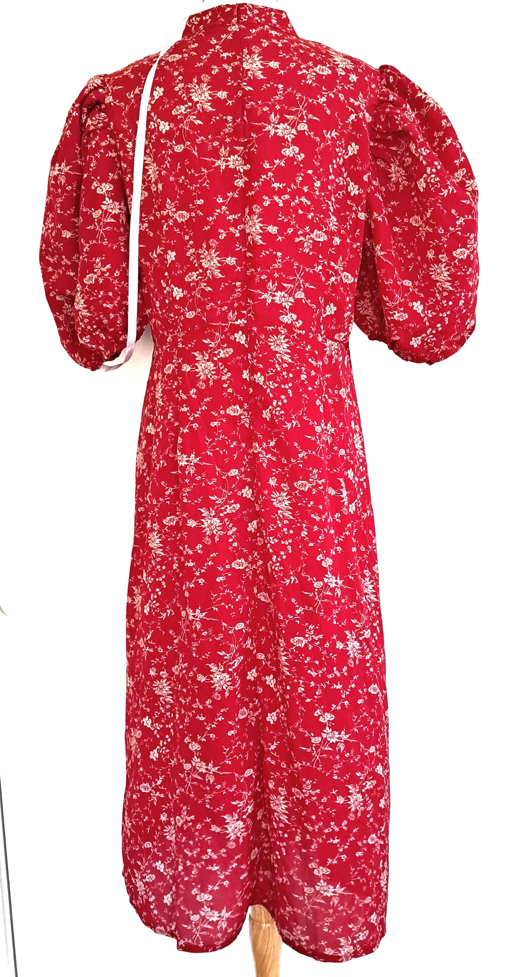 MISSGUIDED Floral Puff Sleeves Midi Dress - Size 14