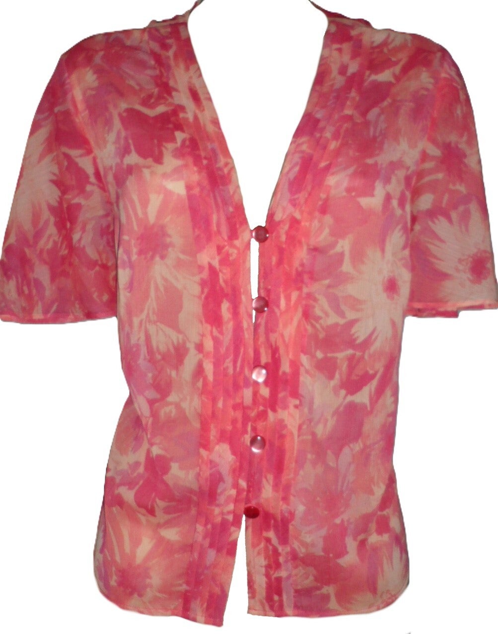Upgrade your wardrobe today with APPLESEED'S Sheer Pleated Button Up Top in petite size 16 or regular size!