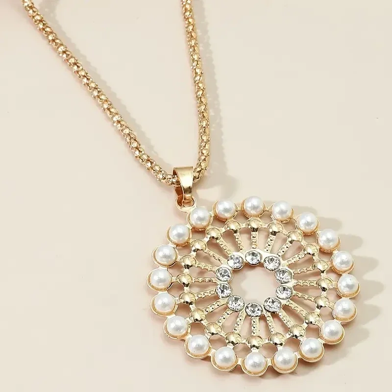 This exquisite pendant necklace features a faux pearl round pendant, adding a touch of elegance to your outfit. The simple style and long sweater chain make it a versatile piece of jewelry for various occasions.